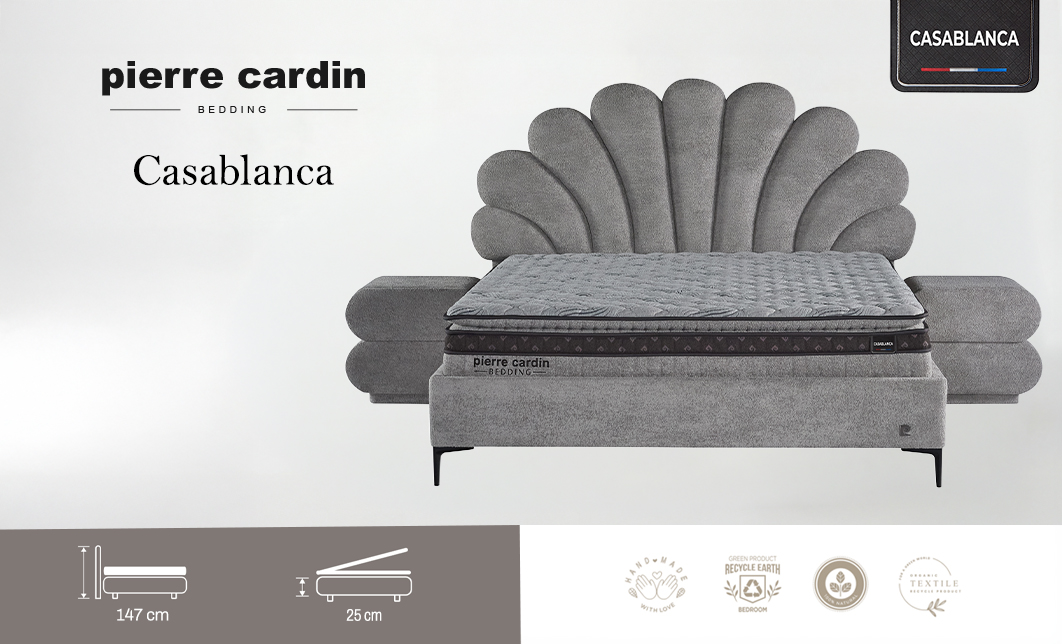 Patul tapițat Casablanca 180x200, realizat sub semnătura Pierre Cardin, propune o abordare expresivă a zonei de odihnă, în care forma devine element central de design. Tăblia cu siluetă inspirată din forme organice, tip evantai, creează un impact vizual puternic, dar echilibrat, integrându-se natural în amenajări moderne sau contemporane cu accente elegante.